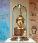Mignon/Athena, 2012, Plasticine (Petroleum, Calcium salts, Aliphatic acids), Oil can, Butcher’s glove, Bell-jar, Paper