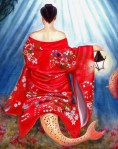 This mural was commissioned in 1997 by the Hotel Triton in San Francisco to decorate their second floor conference room. The fabulist subject matter was designed to compliment the underwater theme of the hotel. It was painted in oil paint on canvas adhered to the walls. After more than a decade, it was destroyed and the room redecorated.